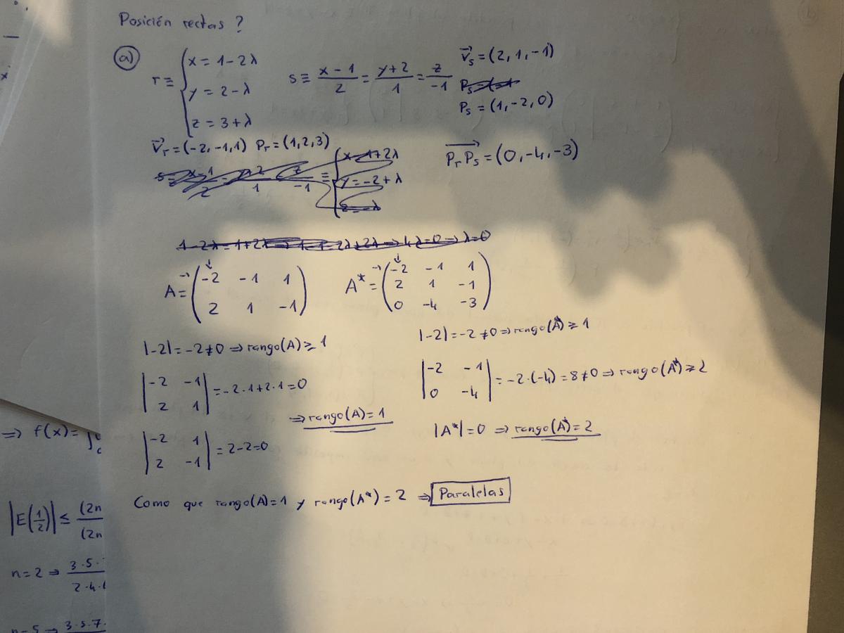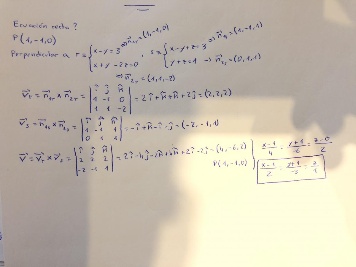 Luego, planteas el producto vectorial entre los vectores directores de las rectas r y s, y queda:
