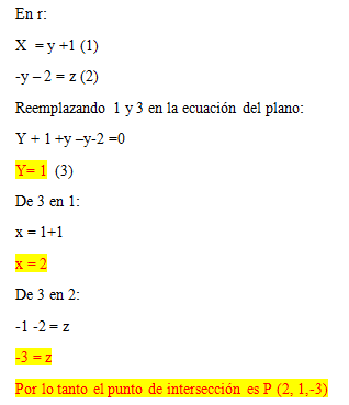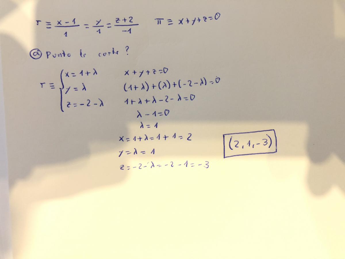 por lo tanto, tienes que el punto A(2,1,-3) es el punto de intersección entre la recta y el plano, cuyas ecuaciones tienes en el enunciado.