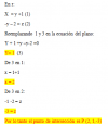 Luego, sustituyes las expresiones señaladas (1) (2) en la ecuación del plano, y queda:
