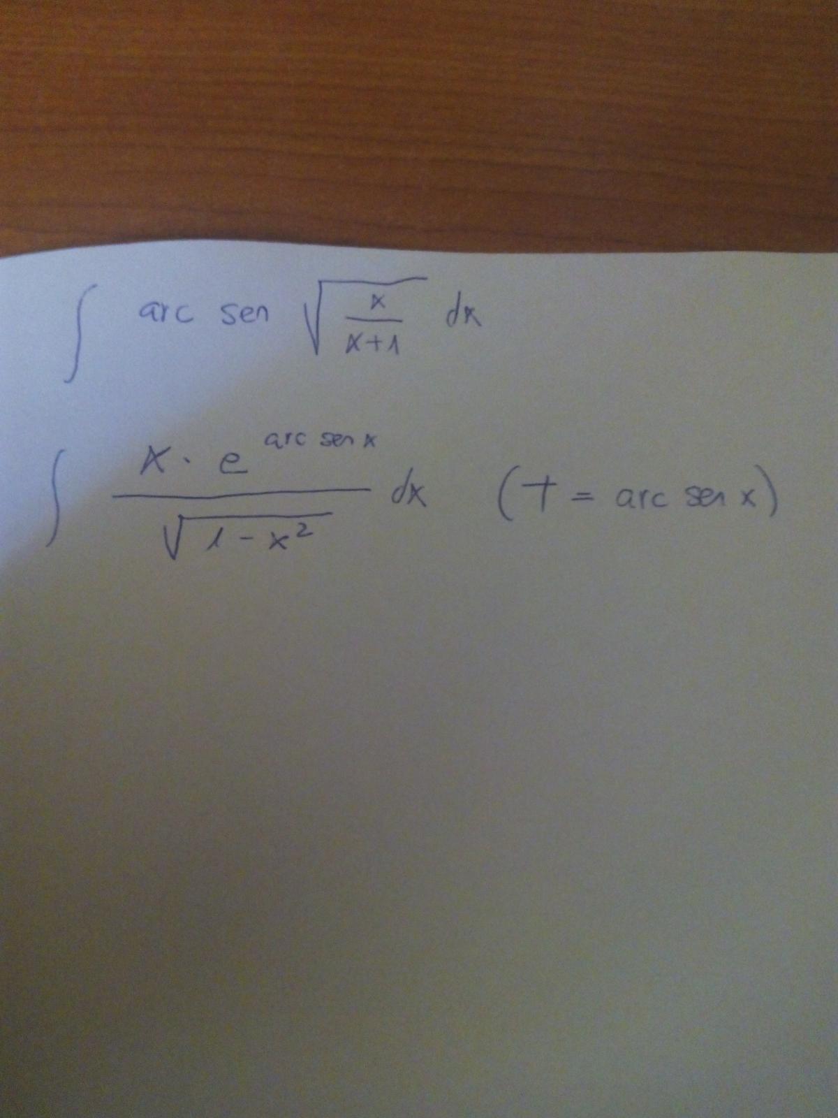 Te queda: 2[t*1/raíz1-t² -integral 1/raíz1-t² *dt = 2t/raíz1-t²-2arcsen(raiz x/x+1) y ya sustituyes la t por su valor real: raiz x/x+1
