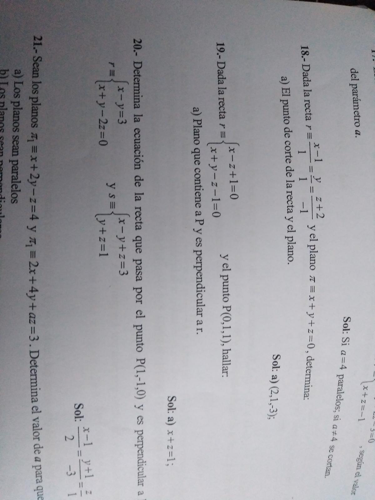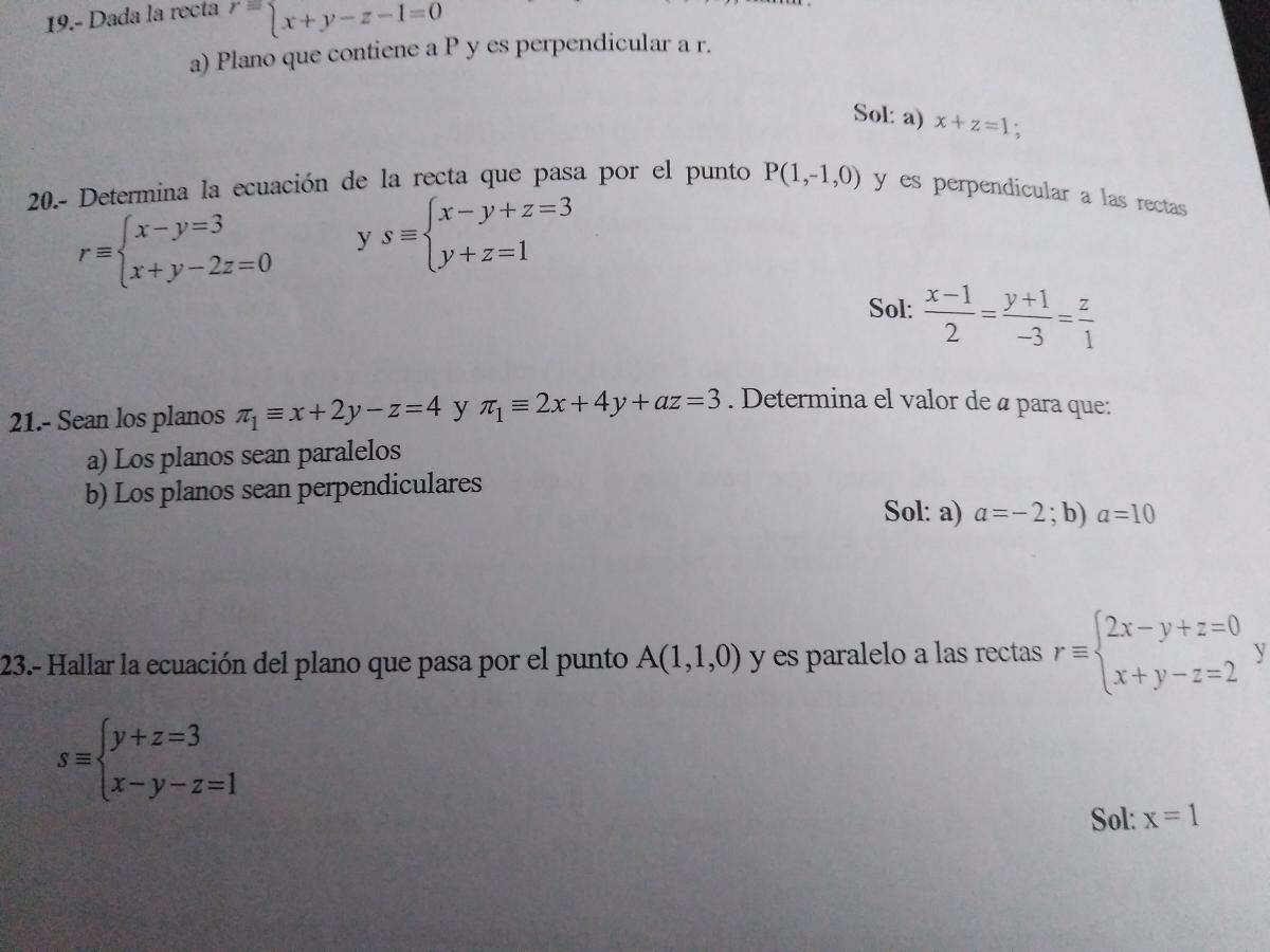 Luego, con las coordenadas del punto P(1,-1,0) que pertenece a la recta buscada, y con las componentes de su vector director,