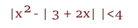 -4 < x2 - [-(3+2x)] < 4, distribuyes los signos en el agrupamiento, ordenas términos, y queda:
