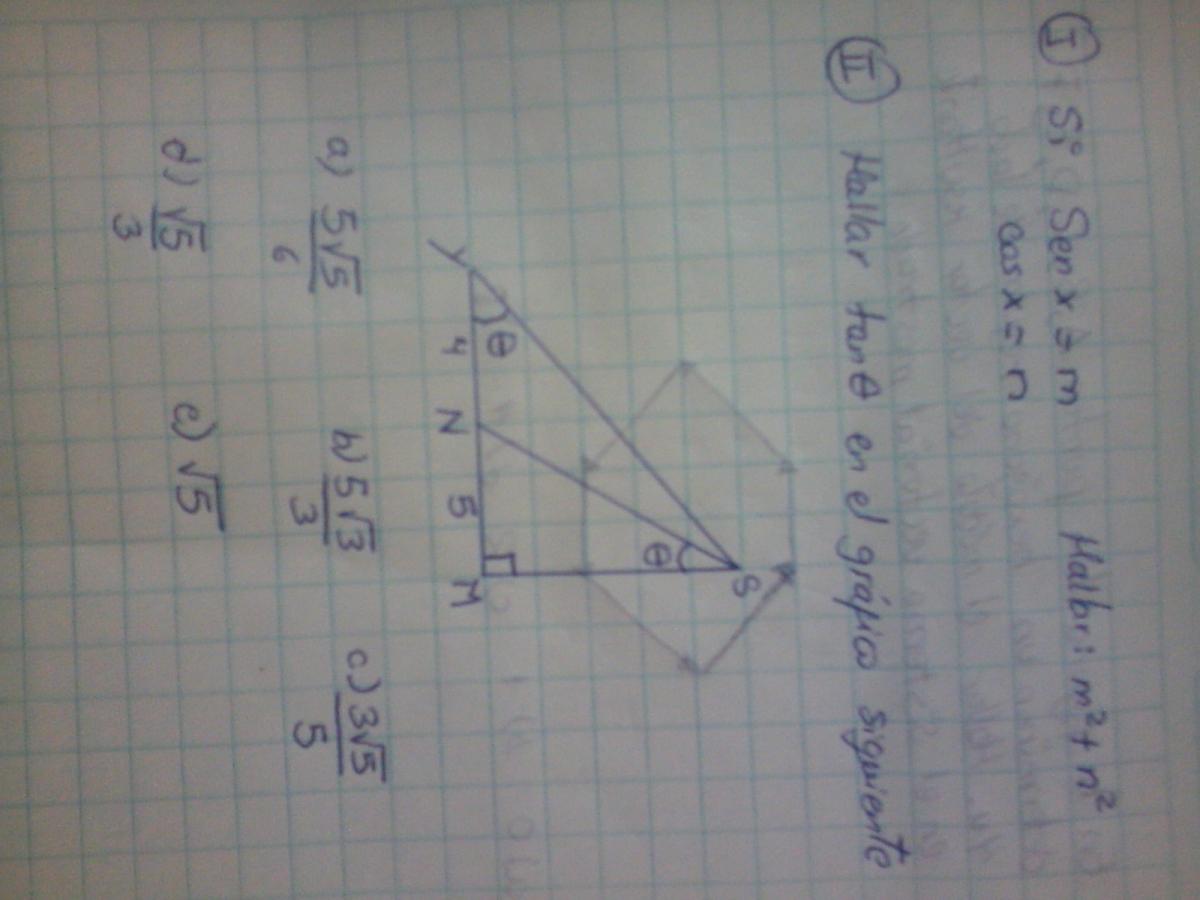 el cateto opuesto al ángulo θ es NM, cuya medida es|NM| = 5, y el cateto adyacente es MS, cuya medida queda expresada: |MS|;