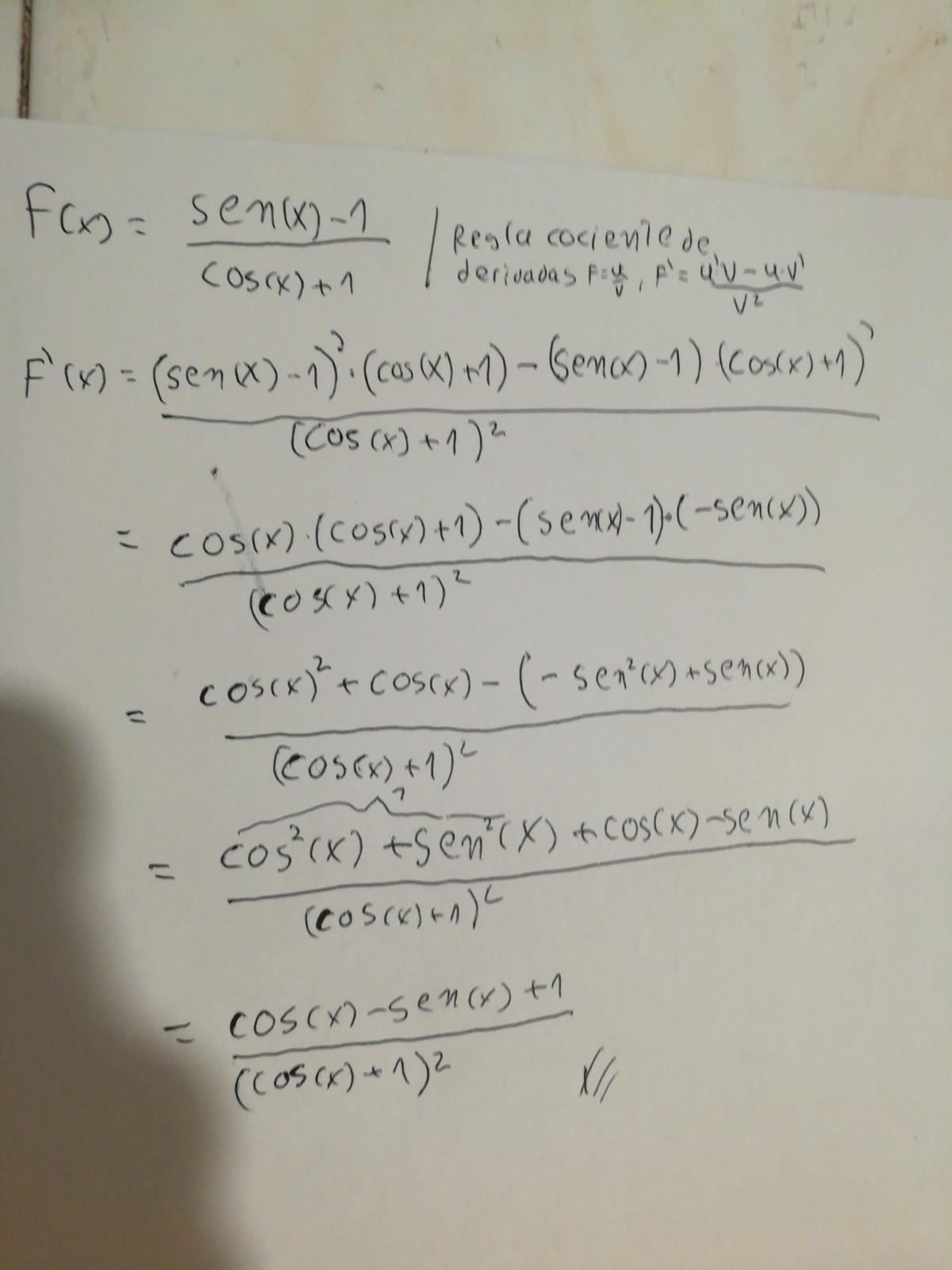 f ' (x) = [ u ' * v - u * v ' ] / v2,