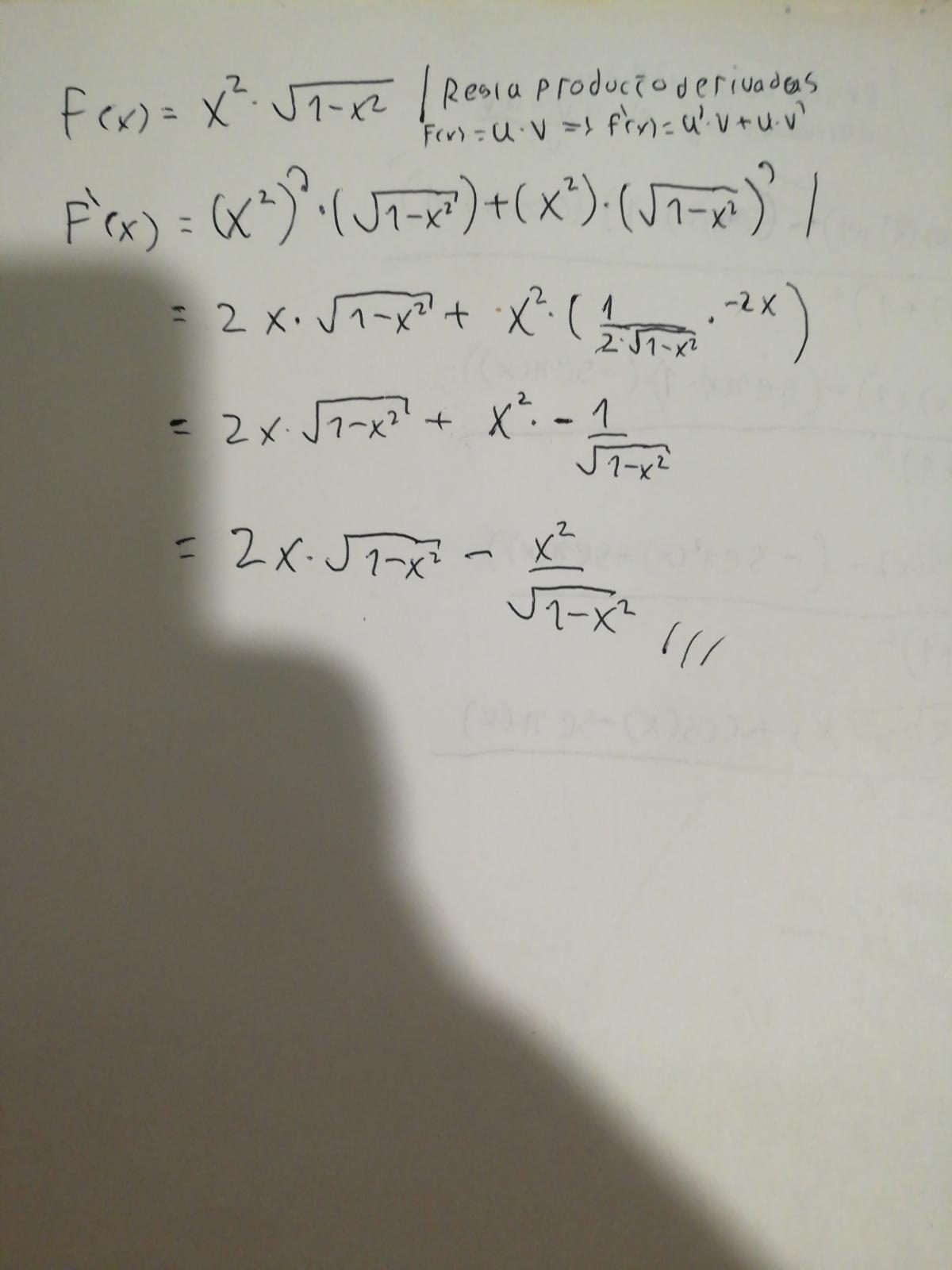 Luego, plantea la expresión de la función derivada primera (observa que debes aplicar la regla de la cadena y a regla del producto):