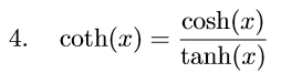 ¿ cotgh(x)=(cosh(x))/(tanh(x)) ?