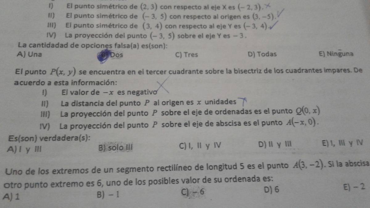 Observa que esta proposición es Falsa, porque el punto proyección pertenece al eje OX, y su abscisa es igual a la del punto P(x,x) y su ordenada es 0, por lo tanto la expresión correcta del punto proyección es: A(x,0).