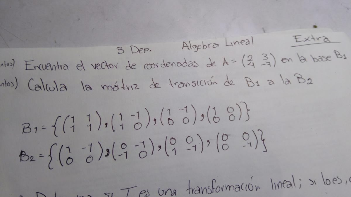 ¿Alguien sabe como se encuentra la matriz de transición de una base de matrices tamaño 2x2 a otra base? (es el inciso b) se los agradecería bastante.