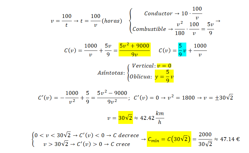 1. Determineu la funcio C(v) = cost total del viatge (combustible + conductor ) quan el trajecte es fa a velocitat v.