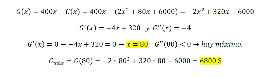 una compañia que construye y vende escritorios, opera en condicion de competencia perfecta y puede vender todos los escritorios que produce a un precio de 400 dolares por escritorio. si se producen x escritorios, y c(x) dolares es el costo total de la produccion semanal, entonces c(x) =2x2+80x +6000. determine cuantos escritorios deben producirse semanalmente para que el fabricante obtenga la maxima ganancia semanal. cual es la maxima ganancia semanal?