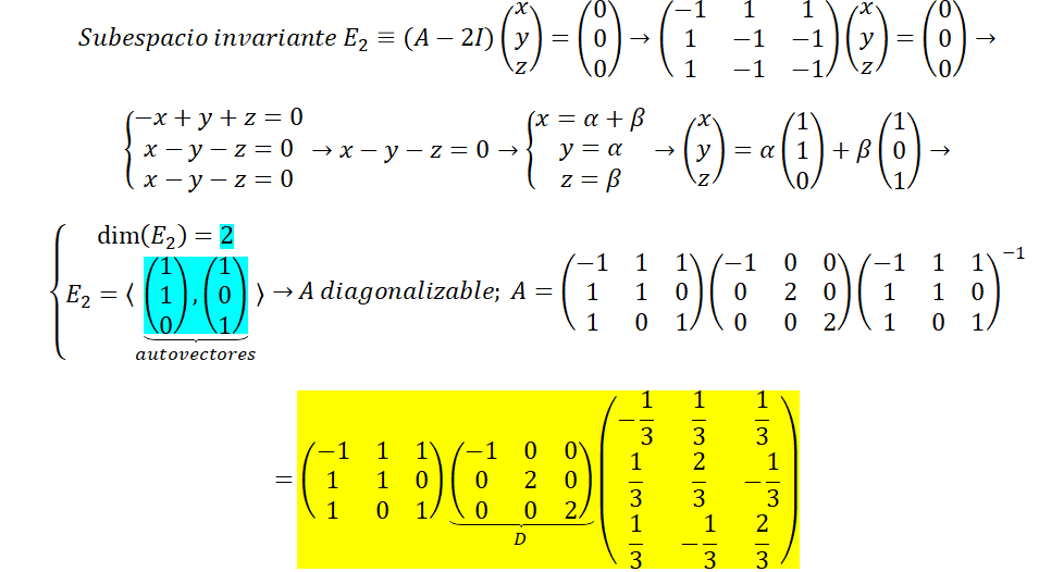 1 -1 1) Ahora sería lo de: λ2=2 Ker(C - 2I3) y con el otro no sé como se hace.