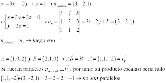 Y determinar si el plano π es paralelo a la recta s que pasa por los puntos A=(1,0,2) y B=(2,1,0)