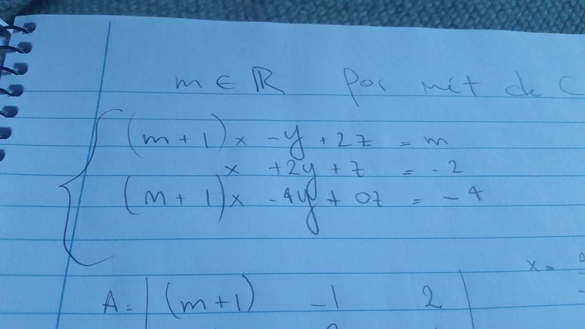Luego, observa que el sistema es homogéneo, con tres ecuaciones y tres incógnitas (observa que k es un coeficiente cuyo valor debes determinar), por lo que para que tenga solución única debe cumplirse que la matriz del sistema: