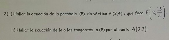 En el ejercicio que adjunto: me dio que la ecuación de la parábola es: x^2-4x+y. La ecuación de la tangente me dio: 1/2x-y+1,5=0. Es correcto el resultado??