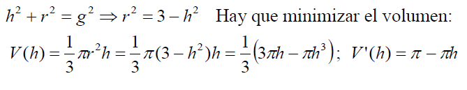 ABC es un triángulo rectángulo con hipotenusa BC = sqrt(3) metros. Determina el cono K de volumen