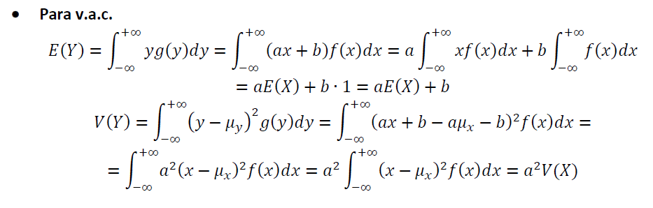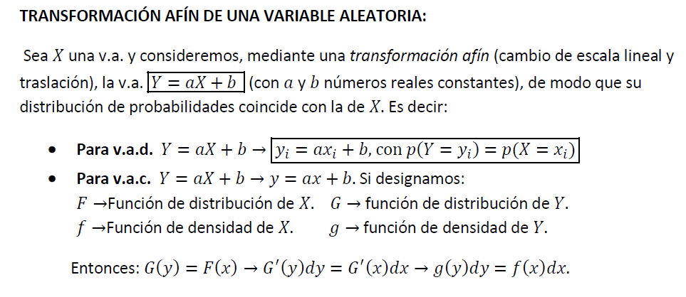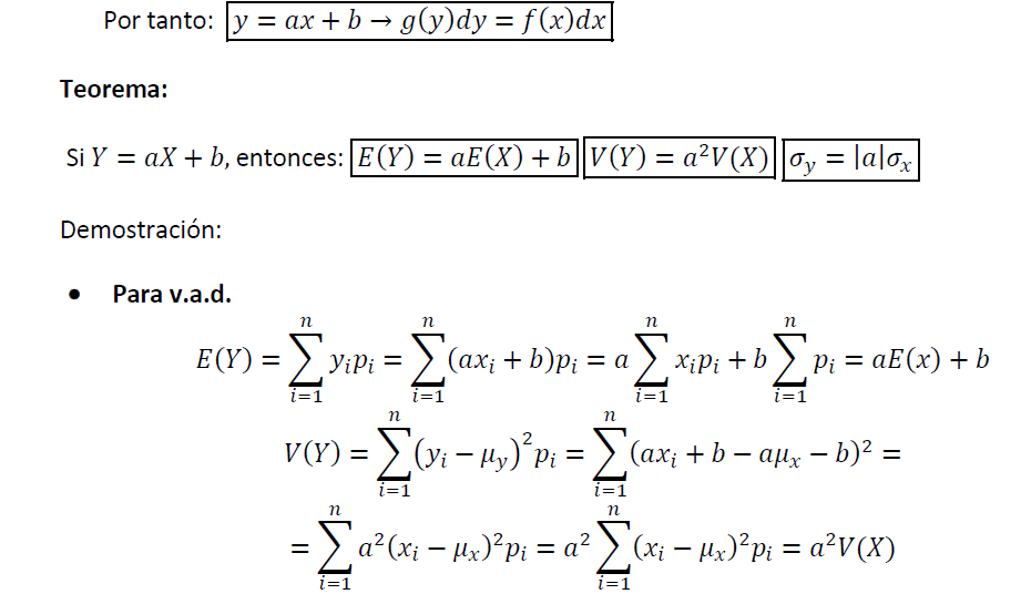 Si X es una variable aleatoria con media m y varianza σ2, entonces la variable aleatoria Y = aX + b (con a y b números reales)