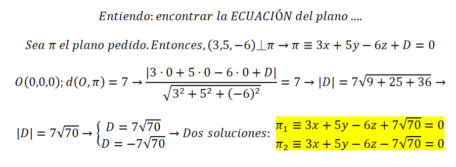 Encontrar el vector del plano que está a 7 unidades de distancia del