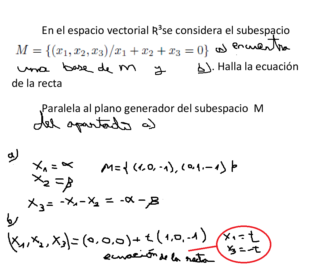 No me salgo con este ejercicio por mucho que lo intento. Por favor necesito una demostración de como sacar el vector de y un punto de la recta r. No tengo ningún ejercicio semejante para saber como resolverlo... Necesito encontrar la ecuación general del plano de estas dos rectas pero sin el vector de r me resulta imposible...