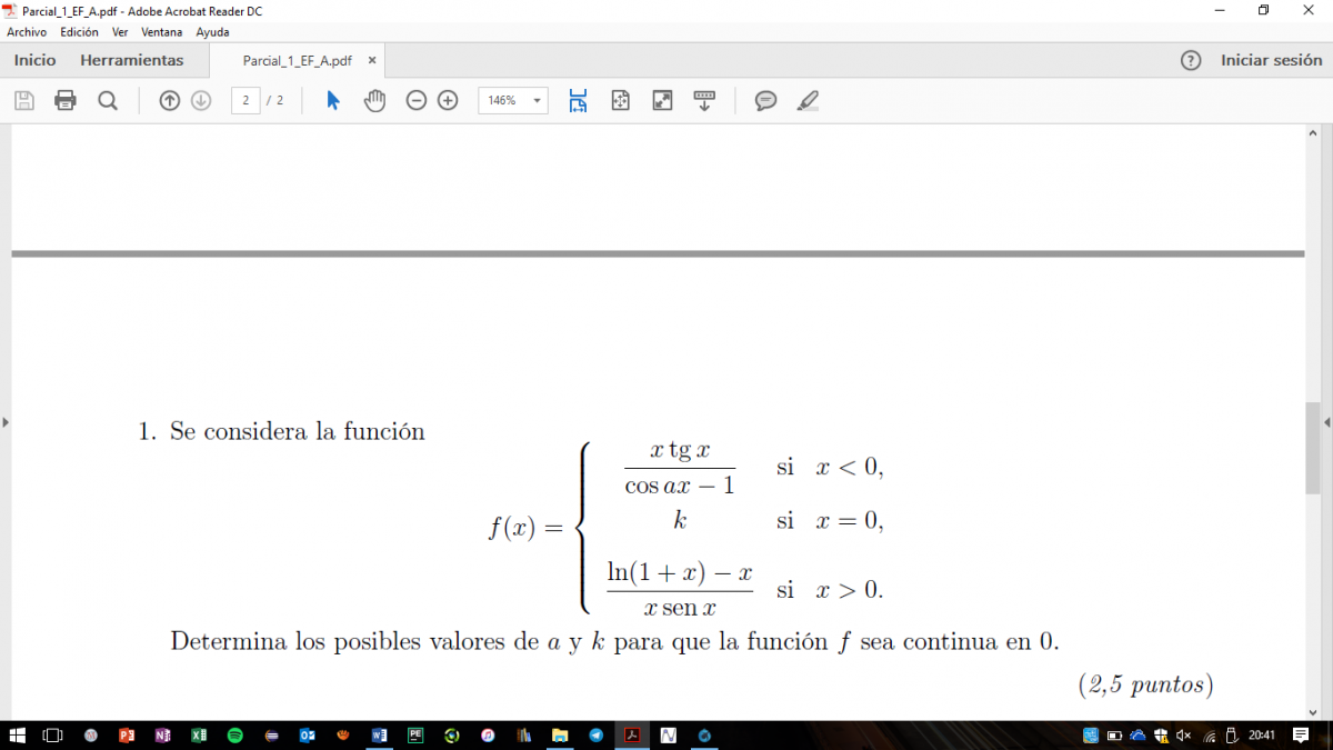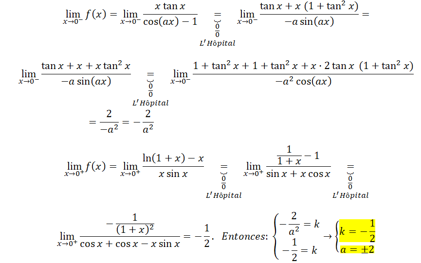 k = lim(x->0-) de (xtgx/cosax -1) = lim(x->0+) de (ln1+x) - x)/xsenx