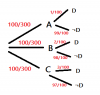P(A|D)= (1/300)÷[(1/300)+(2/300)+(3/300)]