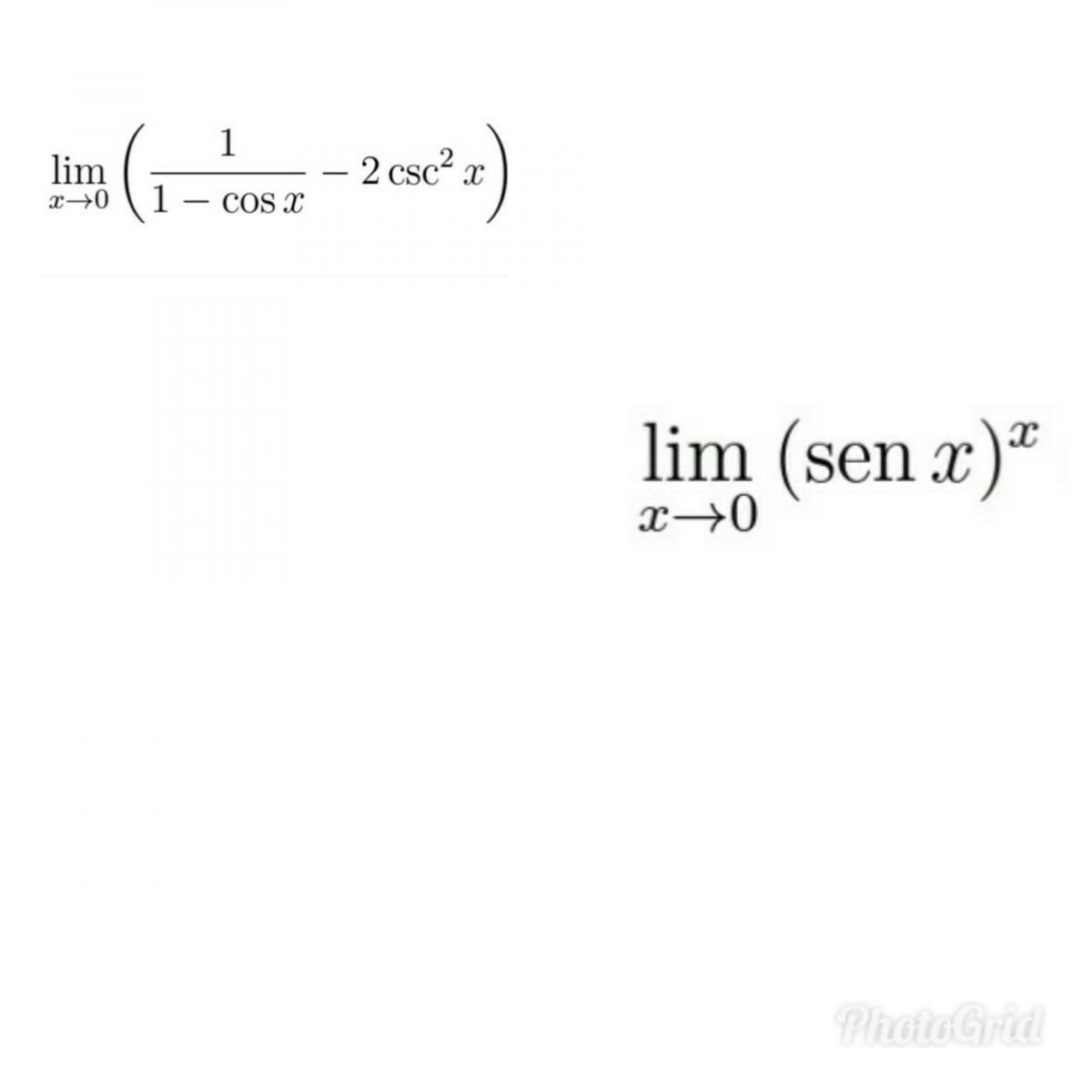 Lím(x→0) ( 1/(1-cosx) - 2cosec2x ) = sustituyes, y queda: