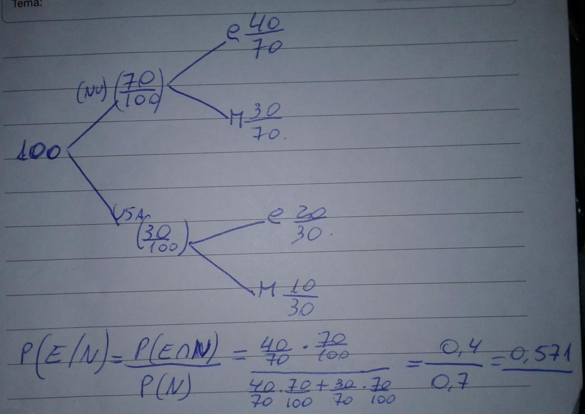 Tienes que corregir tu enunciado: donde pone "Se mezclan 30 piezas, 100 de cada máquina" debes poner "Se mezclan 300 piezas, 100 de cada máquina"