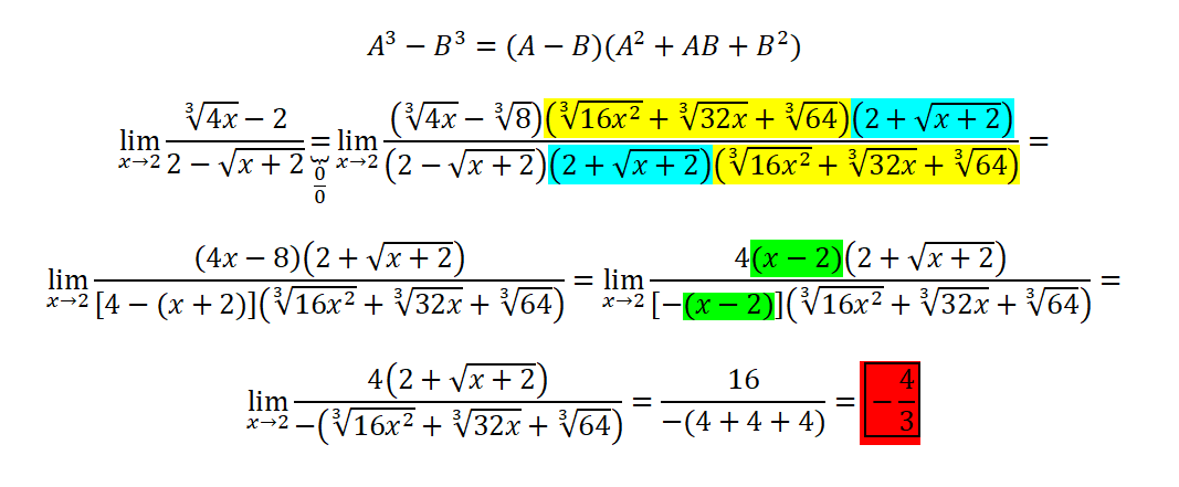 N = (∛(4x) - 2)*( ( ∛(4x) )2 + 2*∛(4x) + 22 )*( 2 + √(x+2) ),