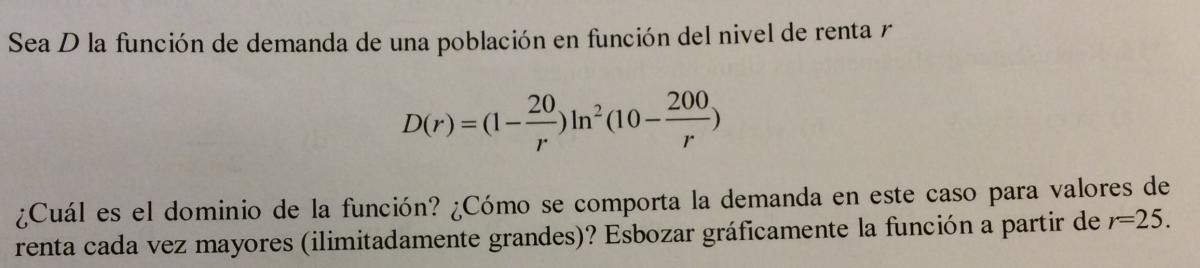 Luego, si trabajas con rentas positivas exclusivamente, tienes que el dominio de la función es el segundo intervalo remarcado, y queda:
