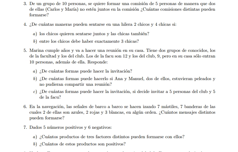 Comisiones con Carlos, pero sin María (observa que tienes ocho persona, y debes elegir cuatro para completar la comisión): Nb = C(8,4).