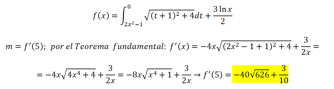 cuya derivada queda (observa que aplicamos el Teorema Fundamental del Cálculo Integral):