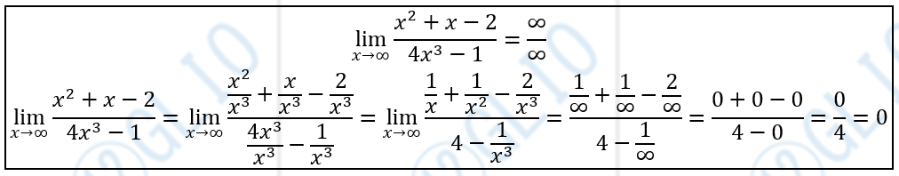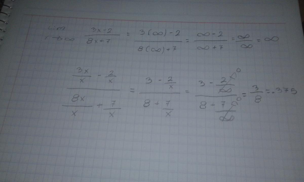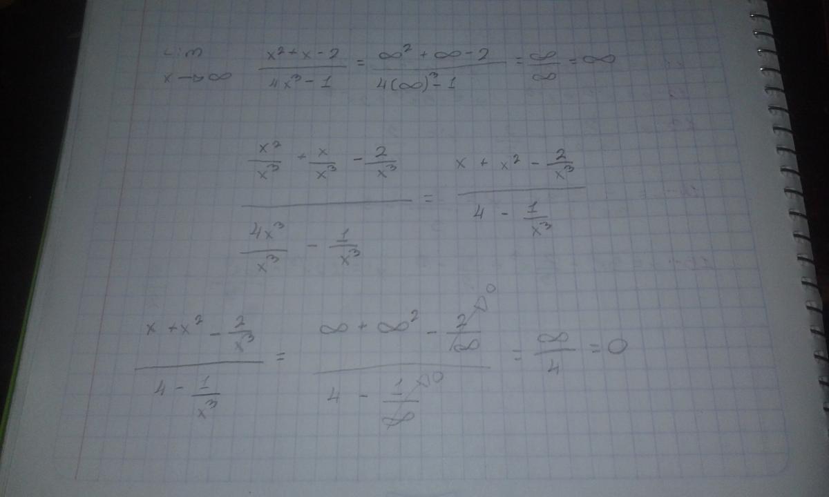 el primero esta mal ni bien empezar. cuando es el limite tendiendo a infinito, de la division de 2 polinomios, si el grado del numerador es menos que el grado del denominador, el limite es 0.