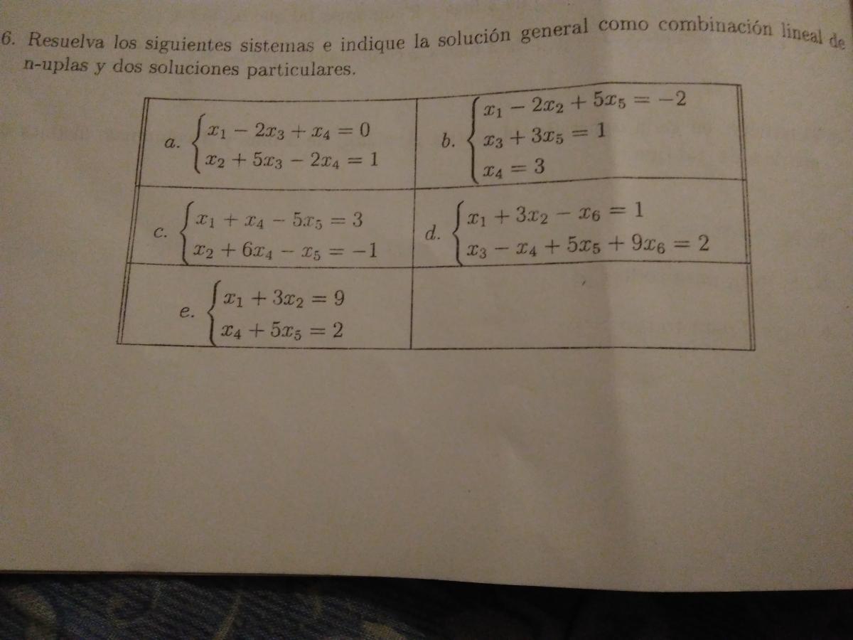 Hola alguien me puede explicar como resolver e indicar la solución general como combinación lineal de n-uplas de los siguientes sistemas. Se los agradecería mucho.