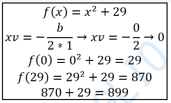 el Dom:(-29;29) eso nos dice que el valor máximo donde llega la imagen y sacando el vértice de x e y obtenemos el comienzo de la gráfica. a<x<b->29<x<870 29+870= 899