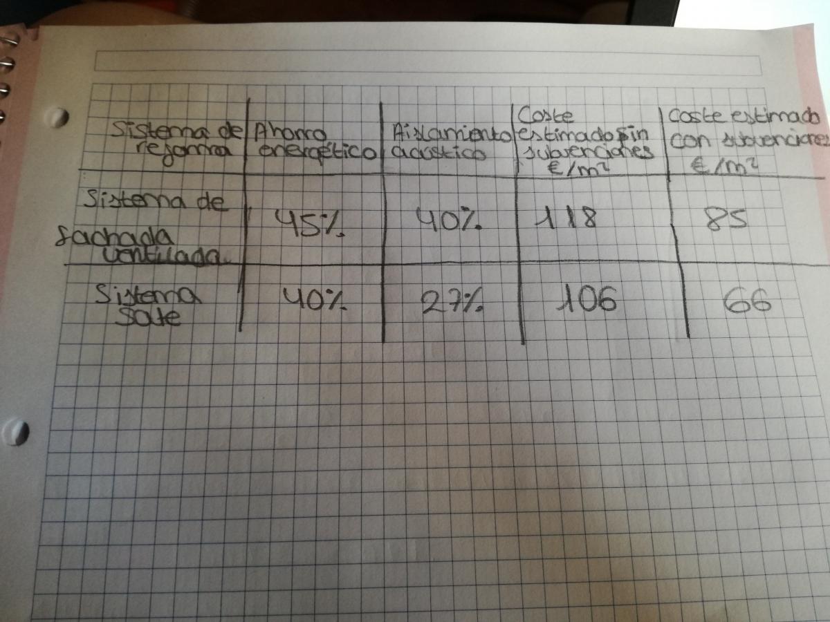 3. La fachada mide 345m cuadrados. sistema de reforma 1, hallar el coste estimado sin subvenciones de arreglo en notación cientifica.