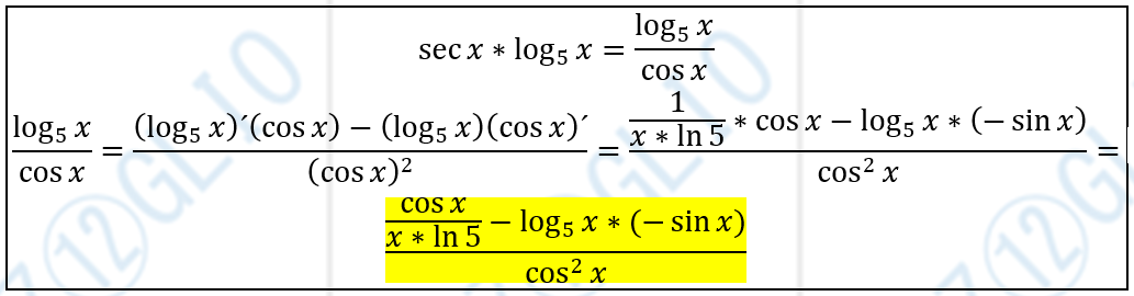 Hola! Como puedo resolver la derivada de ( sec x . log 5 x )? Utilizando la formula, no la definición