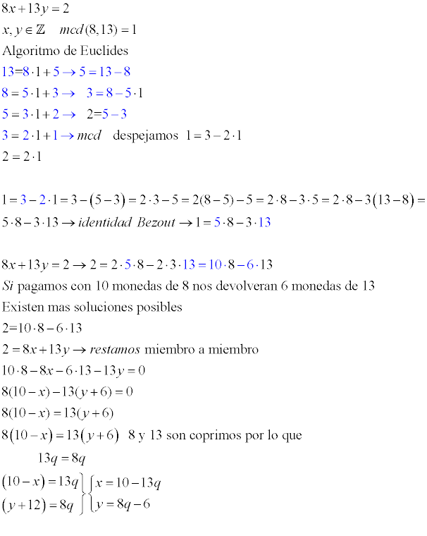 Con m=1 y n=0 ------> 13*1 - 8*0 = 13≠2