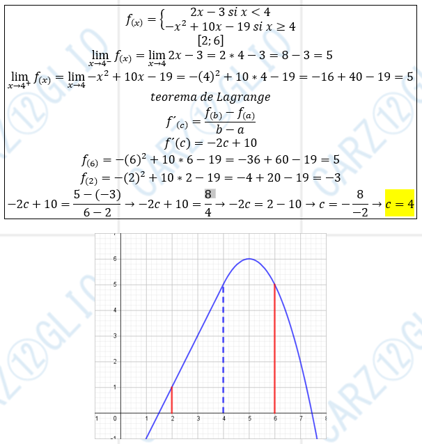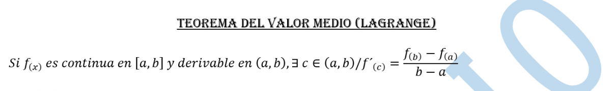 Pero en este caso el teorema del valor medio de lagrange, el teorema dice que dada cualquier función f continua en el intervalo [a, b] y derivable en el intervalo abierto (a, b), entonces existe al menos algún punto c en el intervalo (a, b) tal que la tangente a la curva en c es paralela a la recta secante que une los puntos (b, f(b)) y (a, f(a)). Es decir: