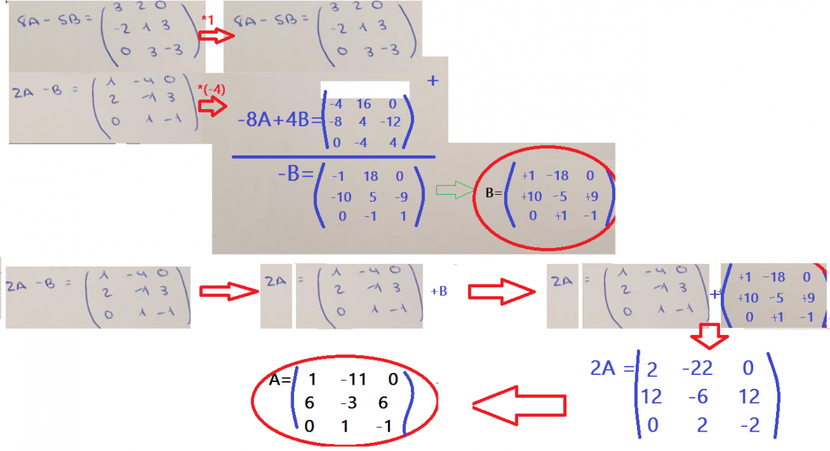 luego sustituyes las expresiones señaladas (1) (2) en la tercera ecuación, y queda:
