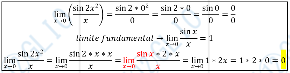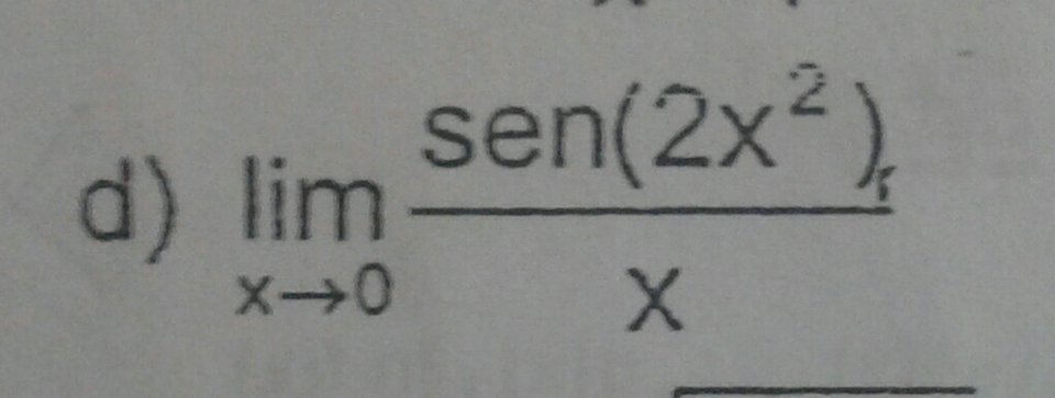 lim(x→0) sen(2x2) ÷ x = sen0 ÷ 0 = 0/0= indeterminación