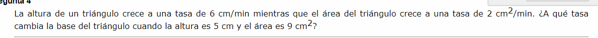 Luego, concluyes que en el instante en estudio la base del triángulo mide: x = 18/5 = 3,6 cm,