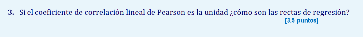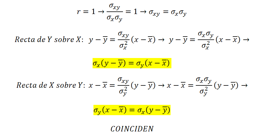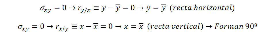 Creo que las rectas de regresión de X sobre Y e Y sobre X serían paralelas (0 grados)