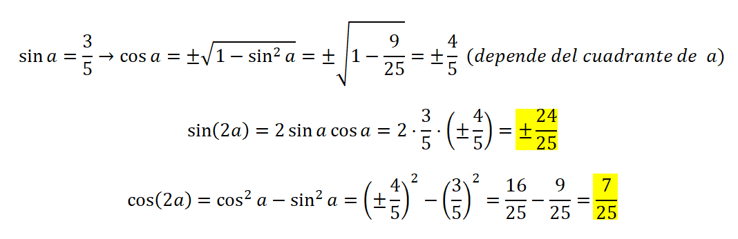 si sin(θ) = 3/5 cúal es el valor del sin(20) y del cos(20)?