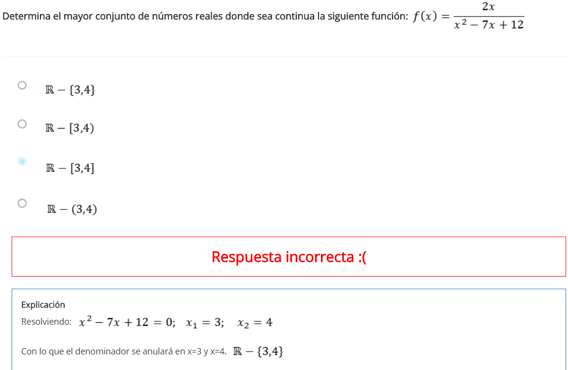 La C excluye además del x=3 y x=4 todos los infinitos puntos comprendidos entre ellos: 3,000001 ......, ......, 3,9999999