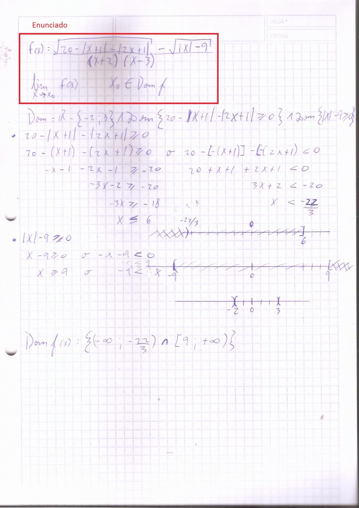 Muy buenas, les queria consultar si calculé el Dominio de la función correctamente. Mi problema es que si ese es el dominio no podré calcular los límites laterales de los puntos. Muchas gracias