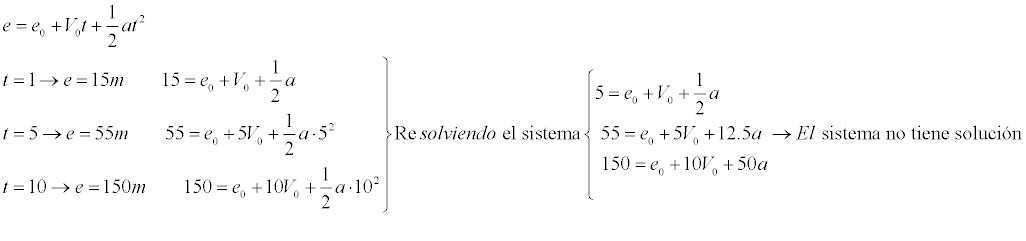 15 - v0 - 0,5*a + 10*v0 + 50*a = 150;