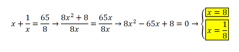 La suma de un número y su inverso es de 65/8. Calcula dicho número.