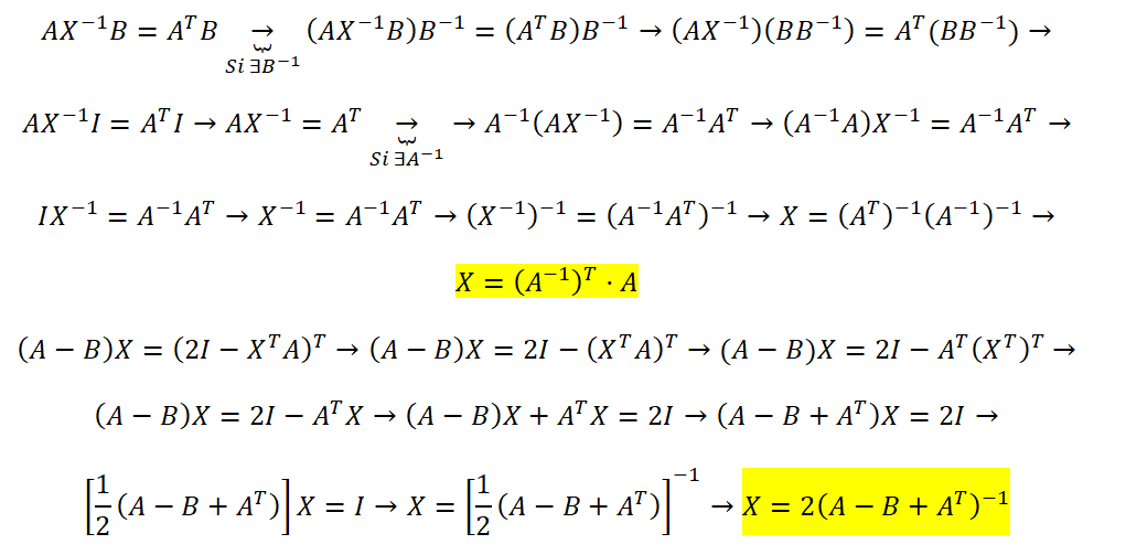 necesito saber como resolver las siguientes ecuaciones matriciales despejando x