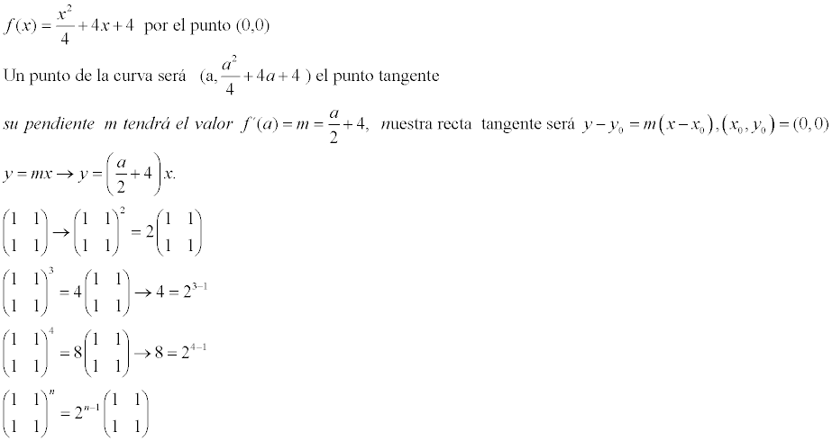 Luego, observa que los elementos de las matrices son potencias de dos, y observa que los exponentes en los elementos son inferiores en una unidad al exponente de la potencia a la que se eleva la matriz en cada caso, por lo que puedes inferir: