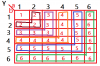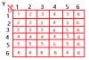 Tanto en X como en Y hay 36 elementos, y 6 valores diferentes (tanto en X como en Y)