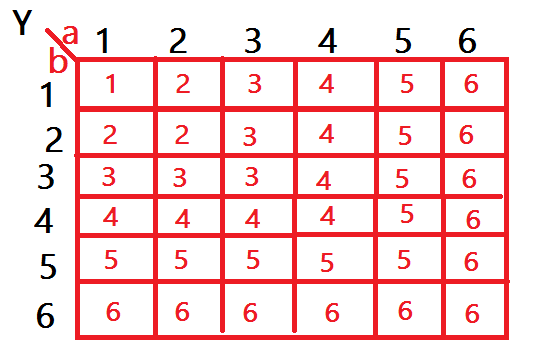 Y= maximo de los valores obtenidos = {1,2,3,4,5,6}=Espacio muestral